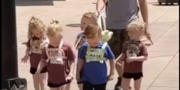 Vater erntet massive Kritik, weil er seine 5-jährigen Fünflinge an der Leine führt