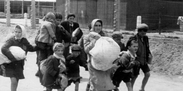 The photograph depicts one of the most harrowing moments of the Holocaust: a group of Jewish women and children are photographed at the Auschwitz-Birkenau concentration and extermination camp on their way to the so-called “selection.” The image is from a…