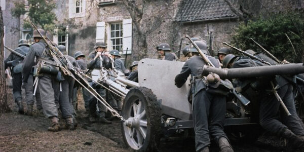 Autumn 1943. The war has Europe firmly in its grip, and the world is witnessing unprecedented destruction. In this rare color photograph, we see German soldiers struggling to drag a heavy Pak 40 through the soggy ground of a Dutch…