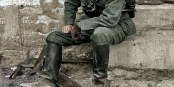 The photo shows an exhausted German officer after heavy fighting in Stalingrad (1942). A German soldier carries an MG-42 machine gun on his shoulder. The photo shows a German soldier on horseback (1940). The photo shows a Waffen-SS soldier with…