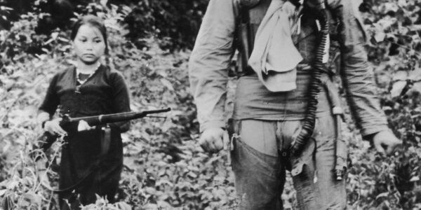 The image of American pilot Gerald Santo Venanzi being escorted through the jungle by a female militia member from North Vietnam has become one of the most iconic photographs of the Vietnam War. In an instant that seems ordinary – two small…