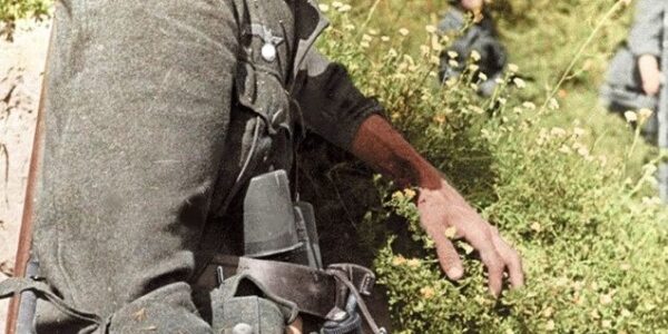The photo shows a German soldier, marked by the fighting on the Eastern Front (1941). It can be seen that he is armed with the 98k carbine and carries M-24 wooden grenades on his belt. In the photo, German children…