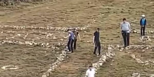 Aktie 0 Gruppe in orthodoxer Kleidung tritt historisches Wahrzeichen auf walisischem Hügel um, während Einheimische „schändlichen“ religiösen Vandalismus verurteilen Jüdische Touristen wurden dabei gefilmt, wie sie ein historisches christliches Kreuz an einem beliebten walisischen Hügel abbauten und aus den Steinen an…