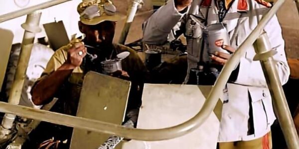 🇩🇪 A lunch in the heart of the North African theater of war On a military vehicle in the middle of the arid desert, the legendary General Erwin Rommel – the “Desert Fox” – shares a meal with a soldier. A…