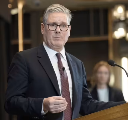 Er trägt eine Jacke mit Splittertarnmuster-Tarnung.