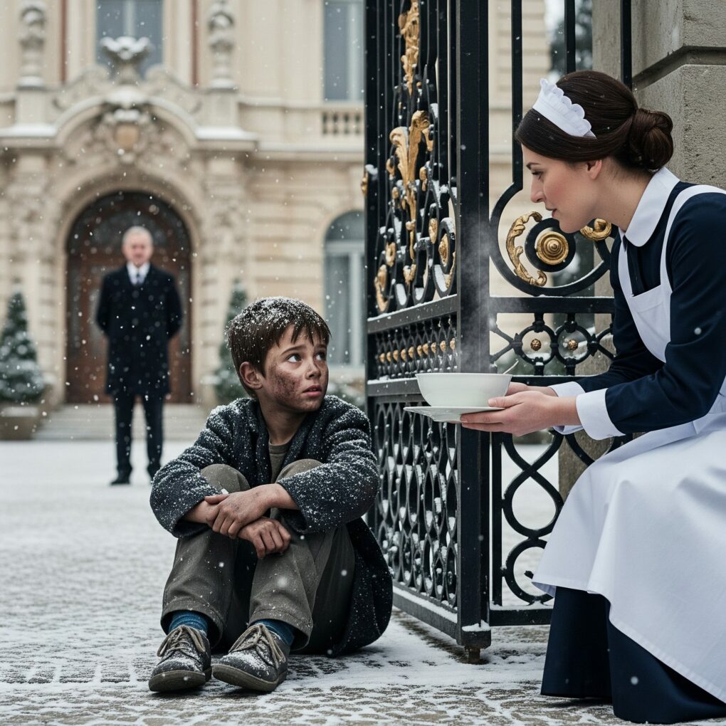 A boy. Barefoot, his face smudged with dirt, his arms wrapped tightly around his bony chest as he trembled from the autumn chill. His hollow eyes were fixed on the grand front door as if it might open to salvation.