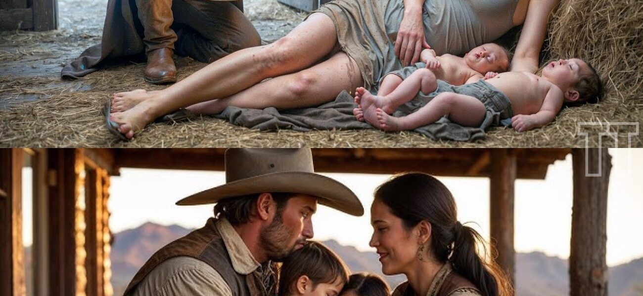 When he pushed open the heavy door, lightning flashed behind him, illuminating the scene inside. A young woman lay on the straw-covered floor, pale and trembling, her dark hair sticking to her face. Beside her, two small bundles wrapped in old blankets moved faintly.