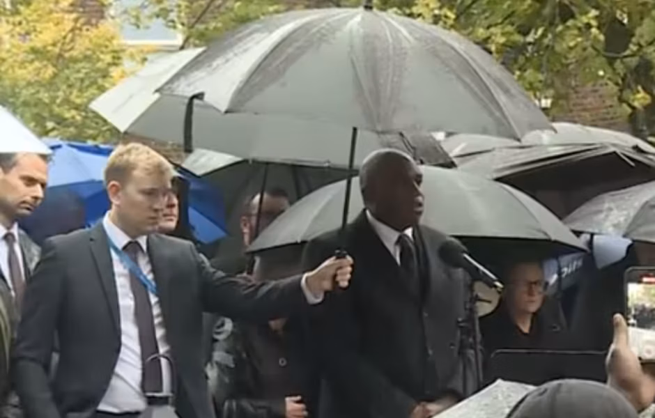 The crowd warned him to “stop the marches” set for this weekend despite the killing of two people at Heaton Park synagogue, in Manchester, on Thursday. Mr Lammy said: “For those who are considering marching over the weekend, I ask them to reflect with all human dignity… to stop and stand back.”