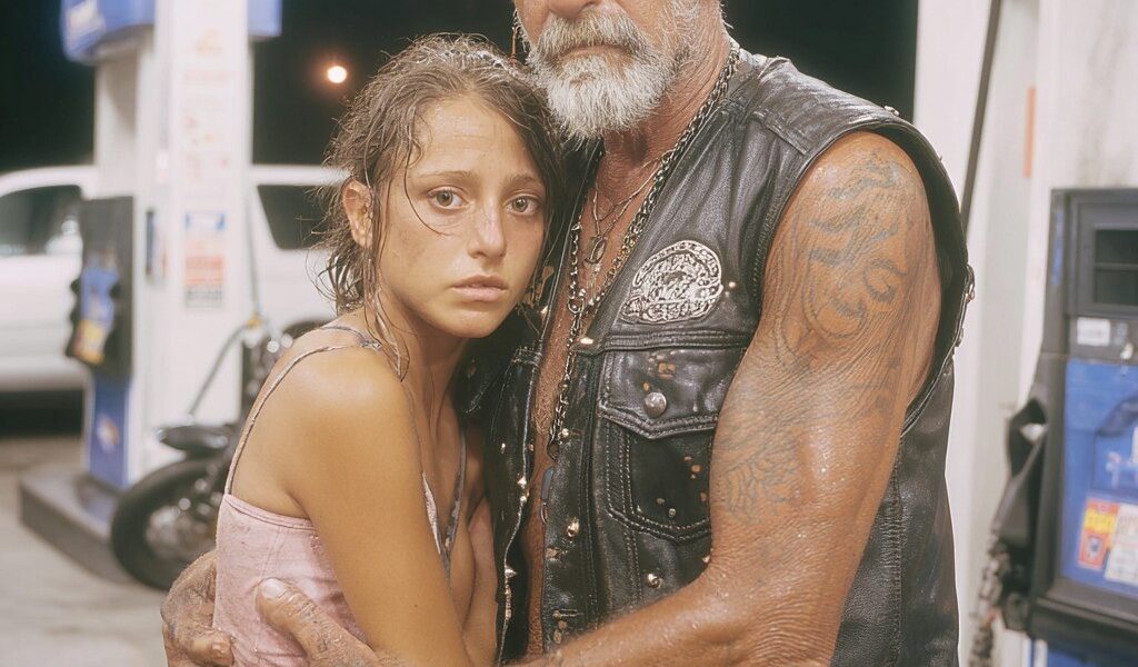 Es war nach drei Uhr morgens, als William „Hammer“ Davidson, ein 69-jähriger Biker und Vietnamveteran, an einer ruhigen Tankstelle an der I-70 in der Nähe von Kansas City anhielt. Er war zwölf Stunden unterwegs, müde und nach der Beerdigung seines Bruders in Gedanken versunken. Was als einfacher Kaffeestopp begann, entwickelte sich bald zu etwas, das sein Leben – und das eines anderen – für immer verändern sollte. Hinter der Toilettenwand hörte er Stimmen, die ihm seltsam vorkamen: Männer, die sich über „Preise“ stritten, und ein junges Mädchen, das flehte, gehen zu dürfen. Sein Instinkt sagte ihm, dass etwas Schreckliches passierte.