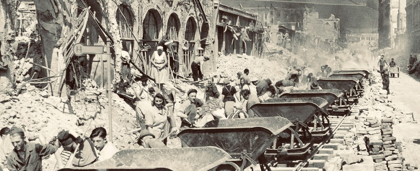 Eine zentrale Rolle spielten dabei die sogenannten „Trümmerfrauen“. Viele Männer waren im Krieg gefallen oder befanden sich noch in Kriegsgefangenschaft, sodass Frauen einen Großteil der schweren Arbeit übernahmen. Sie arbeiteten oft stundenlang unter schwierigen Bedingungen, ohne moderne Maschinen, nur mit einfachen Werkzeugen und viel körperlicher Anstrengung. Ihr Einsatz wurde zu einem Symbol für den Wiederaufbau und die Widerstandskraft der Gesellschaft.