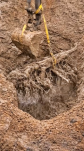 Deutschland, 2025 – Sensationsfund bei Bauarbeiten: Verrostetes Gewehr in Baumwurzel eingeschlossen entdeckt.H