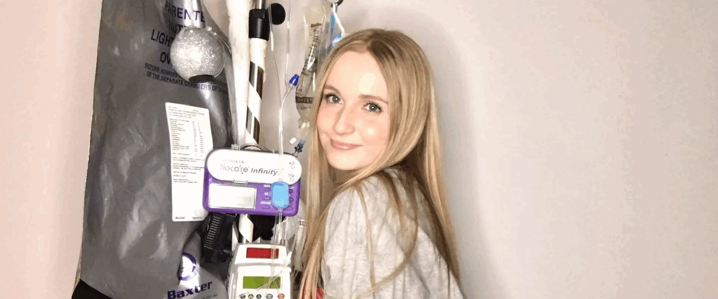 „Mein Stuhlgang war so stark, dass ich mich übergeben oder ihn aus dem Bauch ablassen musste“, erklärte sie. „Ich bekam eine sogenannte totale parenterale Ernährung oder TPN. Das ist im Grunde ein Beutel mit Nährstoffen, der über einen Katheter in der Brust direkt in den Blutkreislauf geleitet wird.“