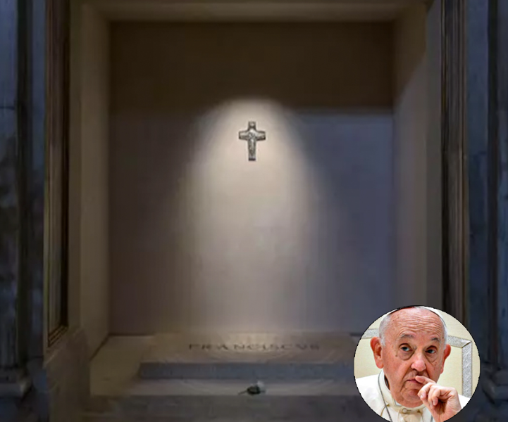 Seit der Beisetzung besuchen Trauernde das schlichte weiße Grabmal und erweisen dem Verstorbenen still die letzte Ehre. Eine einzelne weiße Rose liegt auf dem Grab, das lediglich die lateinische Inschrift „Franziskus“ trägt. Warmes Licht erstrahlt über dem Grabmal, und eine Nachbildung des Brustkreuzes des verstorbenen Papstes hängt darüber an der Wand.