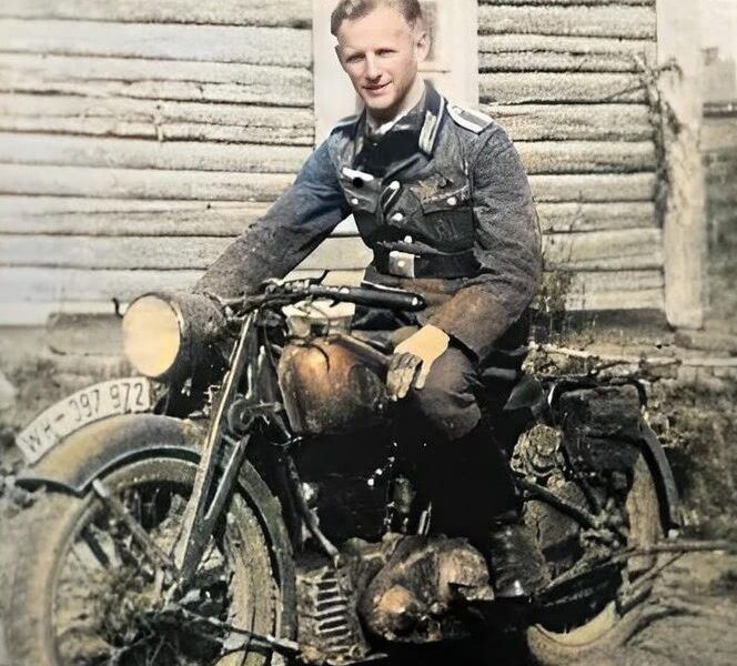 A German soldier on a Zündapp K-800 motorcycle (1940)