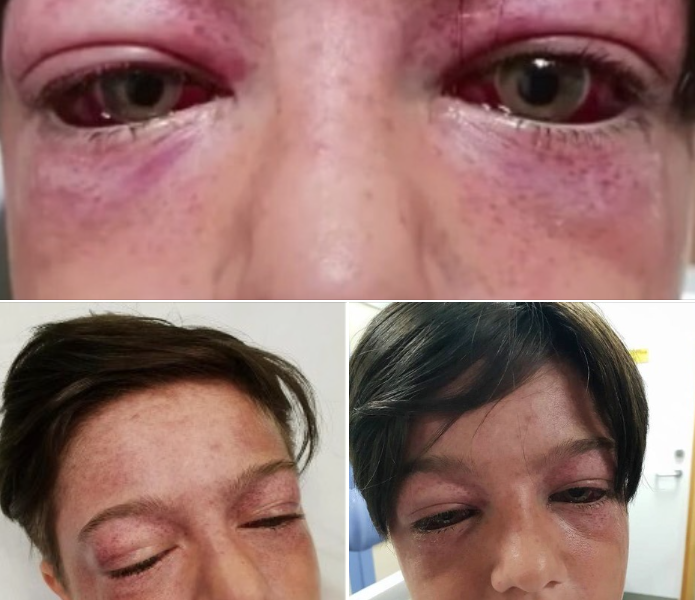 Flüssigkeit und Blut waren in das Gehirn des Jungen eingedrungen, wodurch Blutgefäße geplatzt waren und er vorgewölbte Augen und Sehstörungen davongetragen hatte.