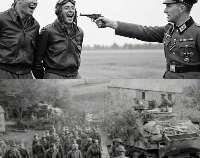 Their six .50-caliber machine guns could each fire 14 rounds per second. The lead pilot opened fire at 400 yards, his tracer rounds traversing the road and striking the truck’s engine compartment. The vehicle spun out, caught fire, and rolled into a ditch. The second Mustang shelled the wreckage to ensure no survivors reached the field, but the circling pilot detected further movement.