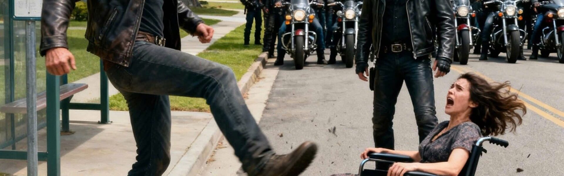 “Get out of the way, you cripple!” – A tall bully yelled and kicked a disabled girl causing her to fall down at a bus stop, then 99 cyclists passing by saw and…