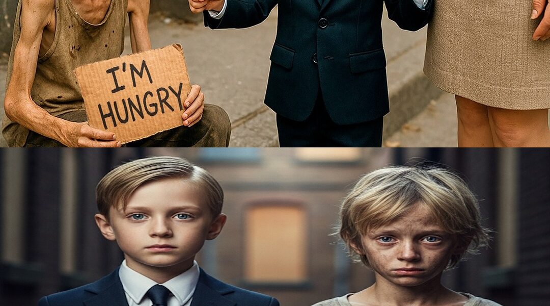 There he was—a boy my age, staring back at me with wide blue eyes that mirrored mine. Same hair, same build, the same face. Only he wasn’t dressed in designer clothes. His shirt was ripped, his jeans dirty, his cheeks sunken from hunger.
