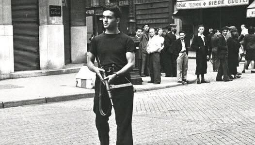 Libération de Paris, août 1944. On voit Roger Savin, 24 ans, résistant depuis 1943, qui sera tué peu de temps après lors d’une attaque des Allemands dans le quartier. Son corps sera découvert le 26 août sommairement enterré dans la…