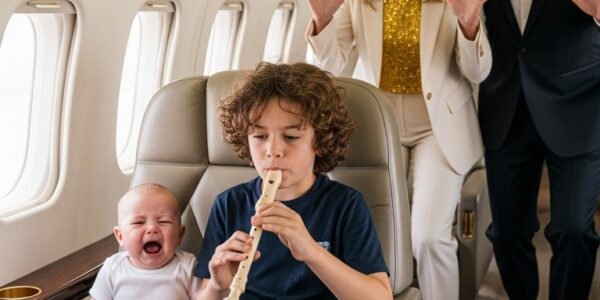 Business-class passengers were glaring as the billionaire’s infant screamed louder and louder — chaos everywhere. Hyn