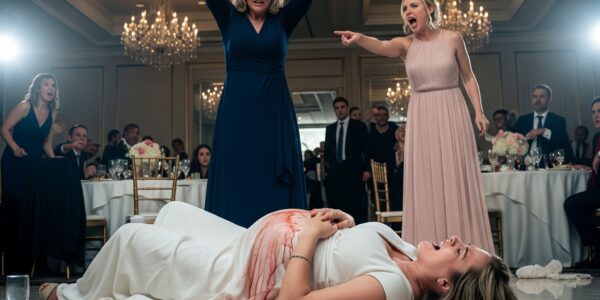 At my brother’s wedding to my husband’s sister, my mom hit me in the head with a wooden menu board in front of 300 guests – and my water broke on the ballroom floor. I was eight months pregnant with twins, clutching my stomach, feeling warm liquid and something far worse spreading under my chair, while my own family stood there arguing about a missing gold bracelet instead of helping me.