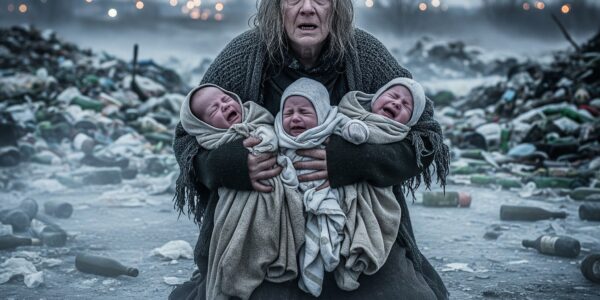 On a freezing winter night, cries echoed through the empty streets near an industrial dump. A frail woman named Hope, who survived on scraps and slept under broken roofs, followed the sound. She found them—three newborn babies, wrapped in dirty…