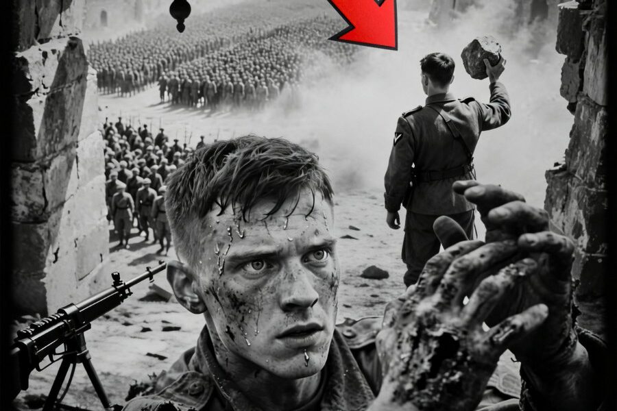 The bang was brutal, and the effect devastating—not only physically, but also psychologically. The enemy soldiers looked up, bewildered. It hadn’t been a gunshot; it made no sense. But when the second brick hit the ground just centimeters away from another soldier, it gradually dawned on them.
