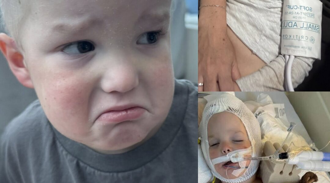 Instead, he is lying in a hospital bed, cheeks flushed with fever, eyelashes damp from the kind of crying no toddler should have to do.