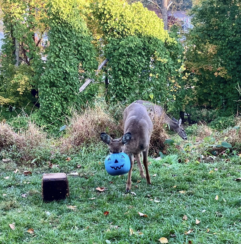In a quiet Maryland neighborhood, the calm of suburban life was disrupted one August morning when residents noticed something unusual in their yards. A young deer, later nicknamed “Bucket Boy”, was wandering with a small blue Halloween bucket stuck on its head. The image, captured by a local concerned resident, initially seemed almost unbelievable. Many who saw it questioned whether it was a prank or digitally altered. But when Bob Swensen, a dedicated local wildlife rescuer, received the report, he knew the situation was real and urgent.
