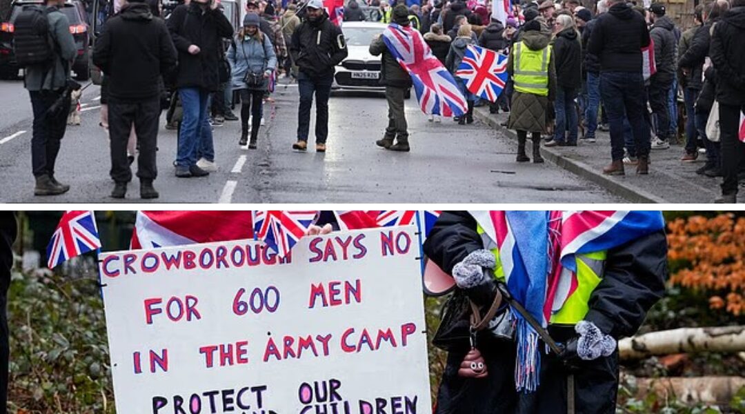 Crowds chanted ‘Keir Starmer‘s traitor’ and marched along the roads in the largest demonstration yet since 27 asylum seekers were moved into the barracks under the cover of darkness on Thursday morning.