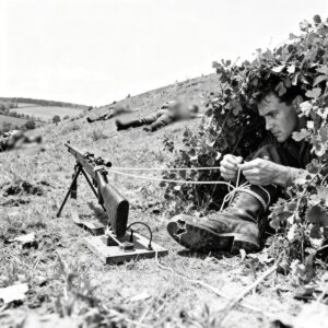 Mit dieser Routine im Kopf baute der Amerikaner eine Ablenkung. Mit einem Stiefelsenkel improvisierte er einen einfachen Mechanismus, der—bei der richtigen Bewegung—den Abzug eines in Stellung gebrachten Gewehrs auslösen konnte. Danach verlagerte er sich vorsichtig in ein nahegelegenes Versteck, von dem aus er den Pfad im Blick behielt, ohne sich zu zeigen.